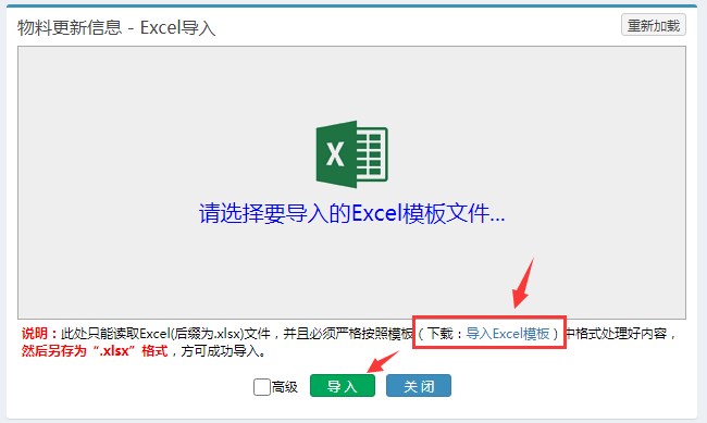 点晴ERP系统提供了导入Excel文件的方式来批量更新物料的相关基础信息,操作方法如下: