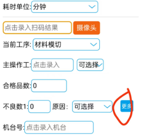 点晴ERP-生产进度汇报不良品数量时如何选择多个不良原因? 电脑端操作时,可以让网管设置不良原因多选选项。不良原因选项维护,请参考教程:http://31172.oa22.cn​ PDA移动终端操作时,点击“更多”按钮,就会显示多个不良原因选项。