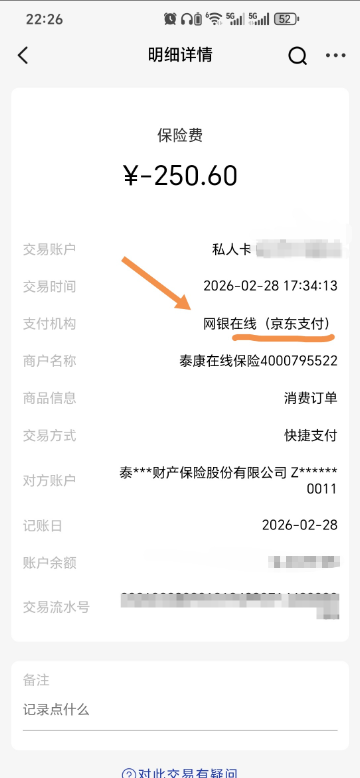 无端端被泰康在线保险公司未经授权扣费后要如何维权?前几天在处理银行卡时,无意中发现一笔异常扣费,每月扣走我250.6元,已经扣了5期,是一家叫做泰康在线保险的单位通过京东支付扣走的。我可以十分确定,我从未通过京东公司或者其他第三方公司、或者泰康在线保险公司购买过任何泰康的保险,我也从未发送过我的个人身份证信息给泰康在线...