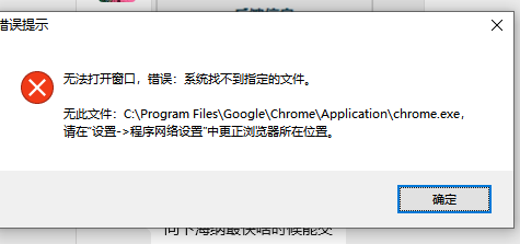 点晴MIS信息通PC客户端点击主页图标,无法打开谷歌浏览器窗口,提示错误:系统找不到指定的文件,如何解决?